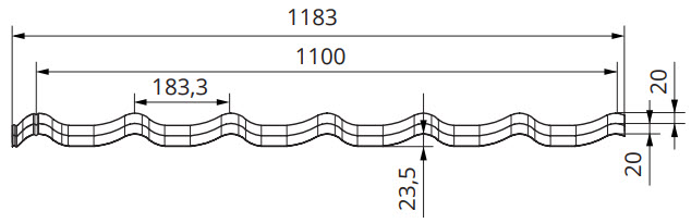 Профиль особенно хорошо смотрится на двускатных и вальмовых крышах, где классическая форма волны раскрывается наиболее гармонично.